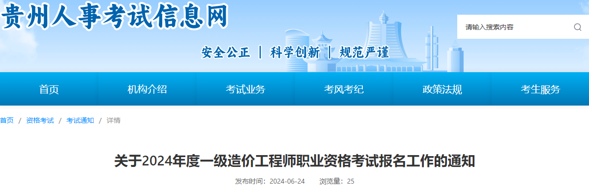 2024年6月24日,贵州人事考试信息网发布了《关于2024年度一级造价工程师职业资格考试报名工作的通知》,其中明确贵州一级造价师考试将于6月28日开始报名。报考人员需仔细阅读报名通知,了解报名条件、资格审核、网上缴费等重要节点信息。