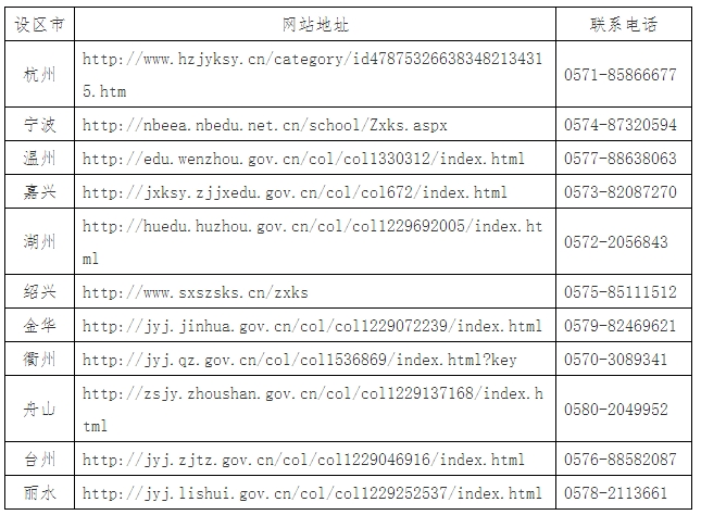 5.请考生务必关注报考地所属设区市教育考试机构网站,及时了解相关信息。各设区市教育考试机构网站地址及联系电话如下:
