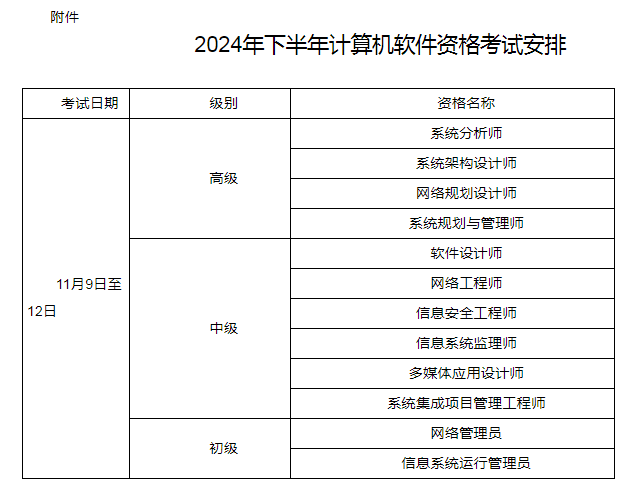根据工信部教育与考试中心《全国计算机专业技术资格考试办公室关于2024年度计算机技术与软件专业技术资格(水平)考试工作计划及有关事项的通知》(计考办〔2024〕1号),现将2024年下半年计算机软件资格考试江苏考区报考有关事项通告如下: