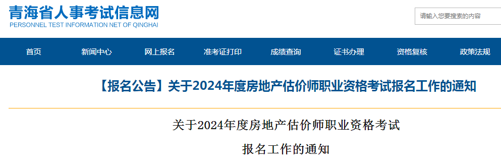 8月13日,青海人事考试网发布了《关于2024年度房地产估价师职业资格考试报名工作的通知》,从中可知2024年青海房地产估价师报名时间为8月16日9时-8月26日18时。