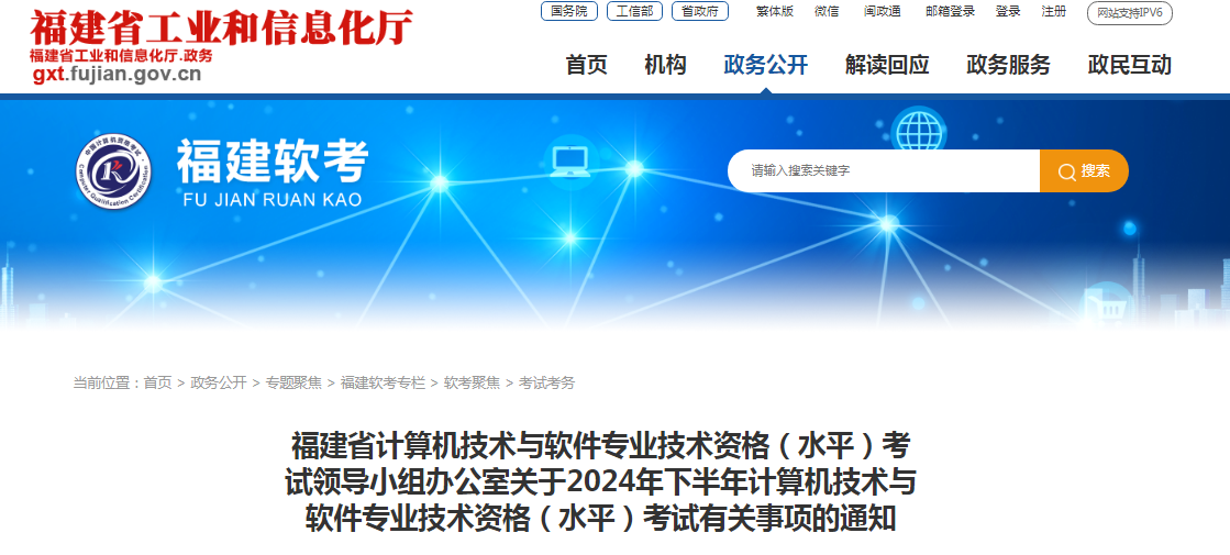福建省计算机技术与软件专业技术资格(水平)考试领导小组办公室关于2024年下半年计算机技术与软件专业技术资格(水平)考试有关事项的通知