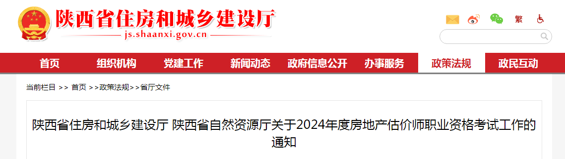 陕西省住房和城乡建设厅 陕西省自然资源厅关于2024年度房地产估价师职业资格考试工作的通知