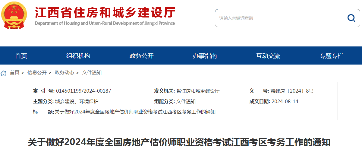 关于做好2024年度全国房地产估价师职业资格考试江西考区考务工作的通知