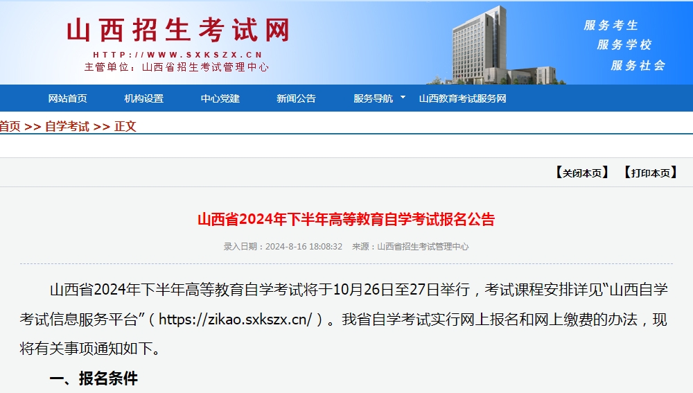 山西省2024年下半年自学考试的注册、报名及缴费均实行网上办理。请广大自考生在报名前认真阅读《山西省高等教育自学考试网上报考流程》,确保报名操作正确无误。