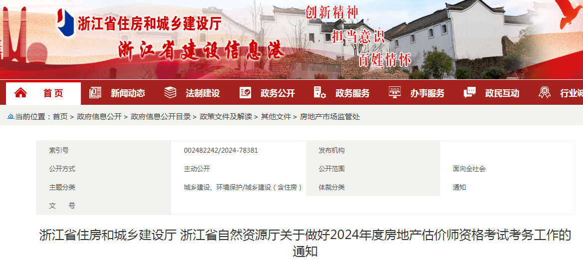 浙江省住房和城乡建设厅 浙江省自然资源厅关于做好2024年度房地产估价师资格考试考务工作的通知
