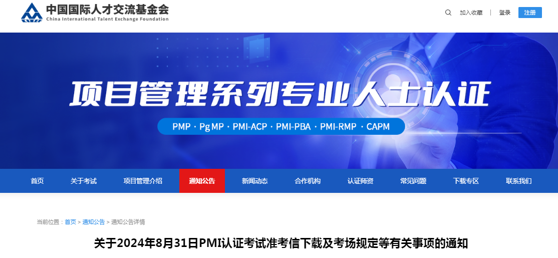 关于2024年8月31日PMI认证考试准考信下载及考场规定等有关事项的通知