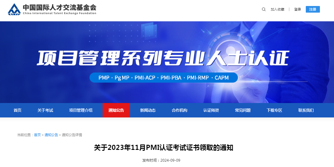 中国国际人才交流基金会官方发布了《关于2023年11月PMI认证考试证书领取的通知》的通知,由通知可知,2023年11月PMI认证考试合格证书开始发放,考生可通过以下两种方式领取证书,具体详见下文通知。