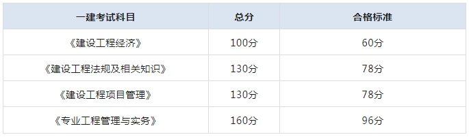 一级建造师考试实行相对固定的合格标准,一建成绩合格标准为各科目总分的60%,具体如下: