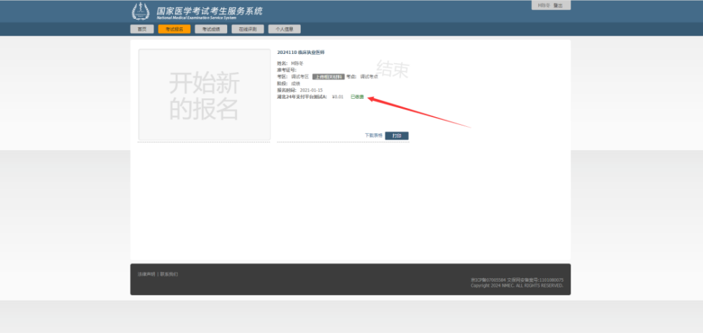 第七步:刷新后显示已缴费表示本次报名缴费已完成。
