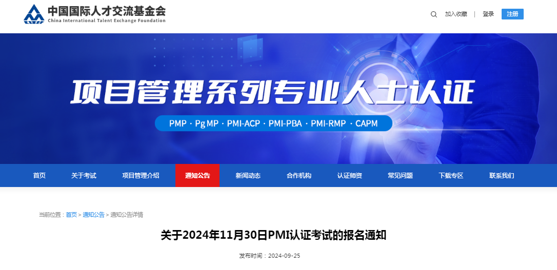 关于2024年11月30日PMI认证考试的报名通知