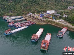 图为船舶驶出码头。 瞿宏伦 摄贵州开阳11月16日电 (瞿宏伦)16日,随着14艘500吨级标准船舶装载的6800吨磷矿石从贵州省贵阳