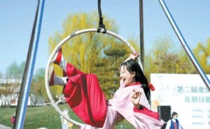 花朝汉服文化节带游客感受“国潮”游人参与汉服春日运动秀。本报记者 刘平摄本报讯(记者 孙颖)刚与一位黑衣“侠客”擦