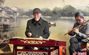 2月16日,兰州鼓子传习所内,82岁的国家级非物质文化遗产传承人魏世发敲击扬琴,为演奏者伴奏。 张煜曼 摄 2月18日电 (杨