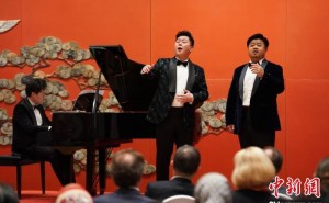 音乐会现场 方非 摄北京1月15日电 一台由扣京、王鹤翔、张文沁、李欣桐等歌唱家以及青年钢琴家岳鹏、全球华人青少年交响乐