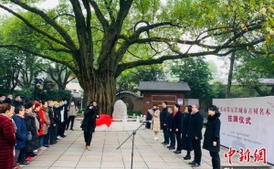 1月5日,重庆市第五次城市古树名木挂牌仪式在渝中区鹅岭公园举行,为一株170年树龄的黄葛树挂牌。 梁钦卿 摄重庆1月5日电 (