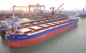 上海企业交付我国船舶业“新年第一船”右图:21万吨纽卡斯尔型散货船“ALPHA TROPHY”号。本报讯 (记者 张懿 通讯员