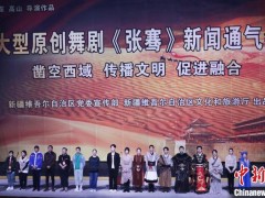 新疆爱国主义题材的大型原创舞剧《张骞》主创及主演人员17日与媒体举行见面会。 王小军 摄乌鲁木齐10月18日电 (王小军 张