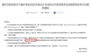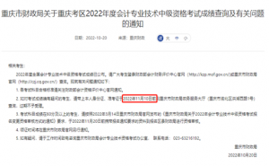 重庆市财政局提醒2022年中级会计职称考试成绩复核11月10日前申请,对成绩异议的请尽早申请!