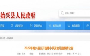 近日始兴县人民政府官网发布《2022年始兴县公开选聘小学及幼儿园教师公告》,明确报名时间为报名时间:2022年11月7日-11月9