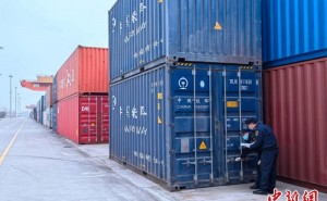 海关关员现场对集装箱进行验核。 郑迎军 摄青岛1月25日电 (记者 胡耀杰)中国—上海合作组织地方经贸合作示范区(简称“上合