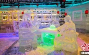 2022右玉冰雪嘉年华冰雕园开园。 李洁军 摄太原1月9日电 (杨杰英 辛泰 李洁军)1月8日晚,2022右玉冰雪嘉年华冰雕园开园,