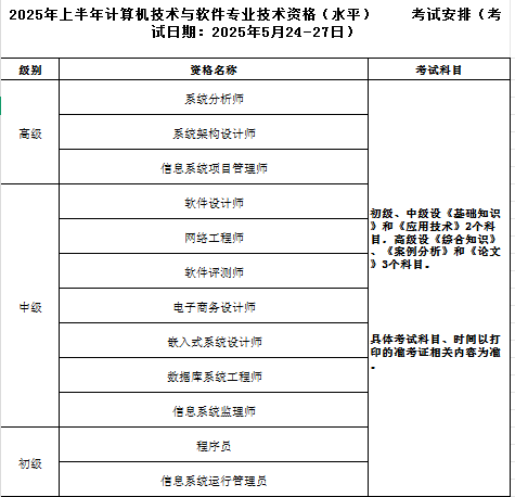 1.2025年上半年计算机技术与软件专业技术资格(水平)考试安排(考试日期:5月24-27日)