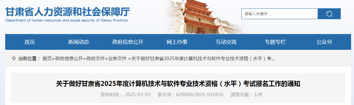 关于做好甘肃省2025年度计算机技术与软件专业技术资格(水平)考试报名工作的通知