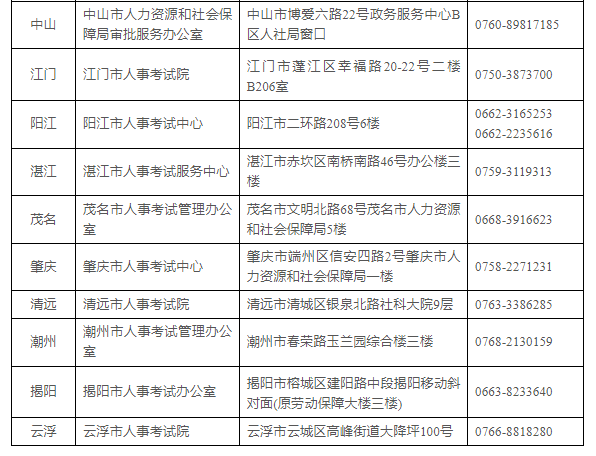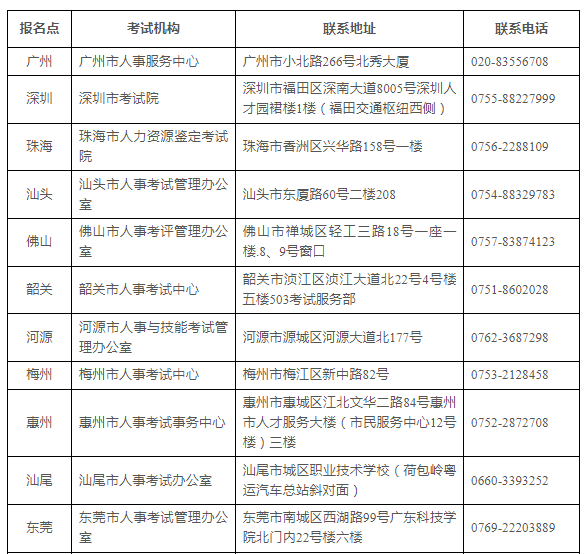 报考期间,全省各地级以上市人事考试机构开通咨询服务电话(详见附件2)。信息更正等业务事项可通过“广东省专业技术人员职业资格考试业务办理系统”(http://123.56.228.71:82/)在线申办。
