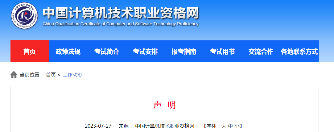 7月27日,中国计算机技术职业资格网发布了一则关于2023年上半年软考成绩复查的相关声明,具体原文内容如下文所示,请大家参阅。