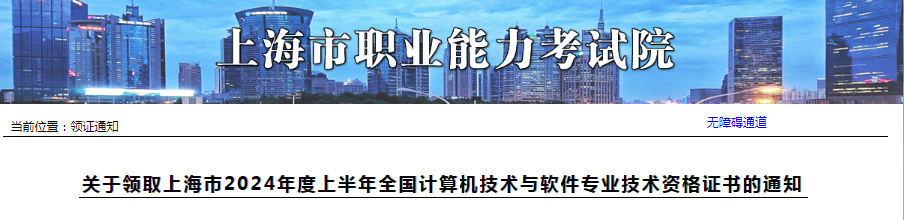 关于领取上海市2024年度上半年全国计算机技术与软件专业技术资格证书的通知