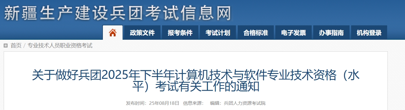 关于做好兵团2025年下半年计算机技术与软件专业技术资格(水平)考试有关工作的通知