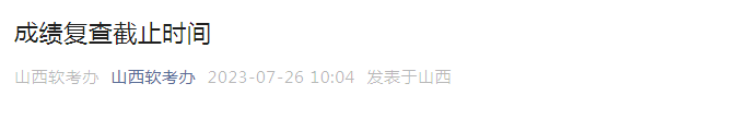 7月26日,山西软考办发布了《成绩复查截止时间》,由此通知可知,2023年上半年软考中级成绩复查截止时间是2023年7月28日下午6点,逾期不予受理。