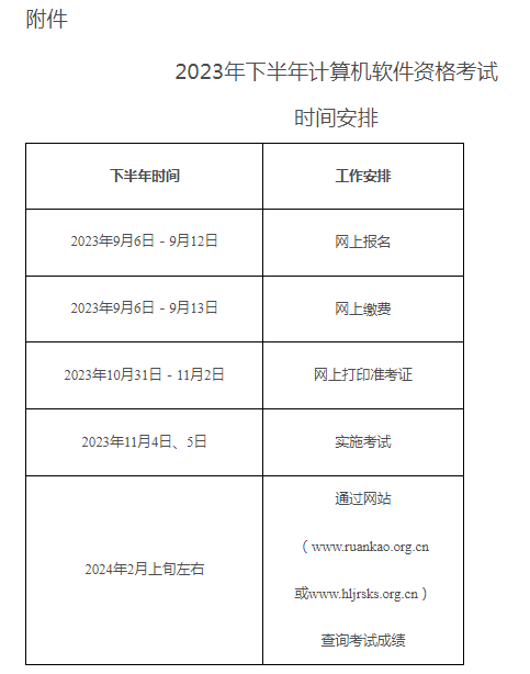 二、2023年下半年计算机软件资格考试时间安排见附件。