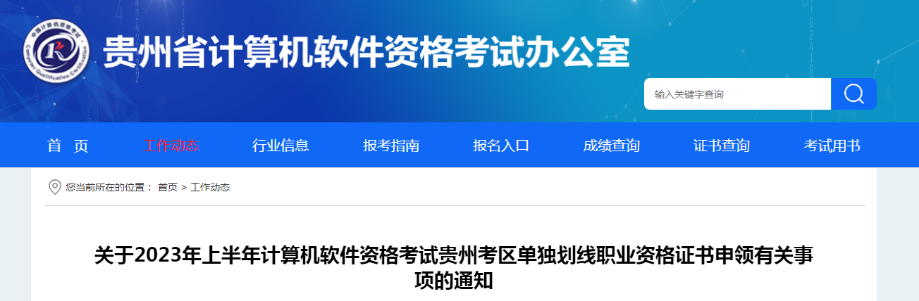 关于2023年上半年计算机软件资格考试贵州考区单独划线职业资格证书申领有关事项的通知