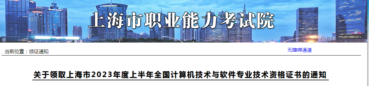关于领取上海市2023年度上半年全国计算机技术与软件专业技术资格证书的通知关于领取上海市2023年度上半年全国计算机技术与软件专业技术资格证书的通知