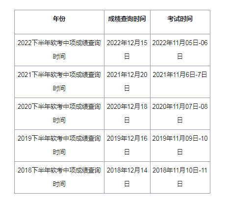 下表是近几年来下半年软考中项考试成绩查询时间,考生们可以参考: