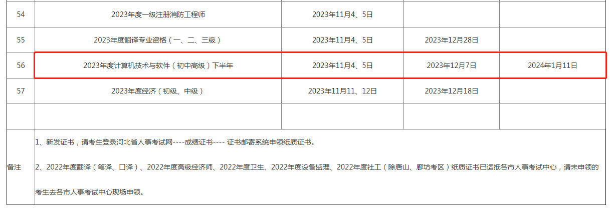 河北2023年下半年软考中级合格证书领取时间已经公布!根据河北人事考试网发布的《全省专业技术资格证书发放进度一览表》可以得知,河北2023年下半年软考中级合格证书领取时间为:2024年1月11日起。