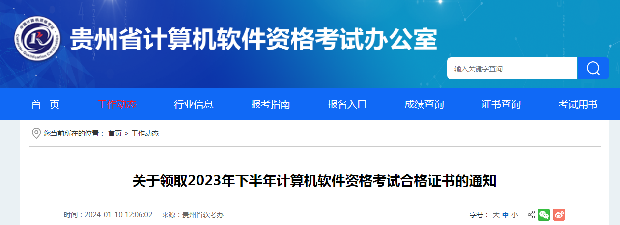 2023年下半年全国计算机技术与软件专业技术资格(水平)考试工作已全部结束。现就贵州考区考生考试合格证书领取有关事项通知如下: