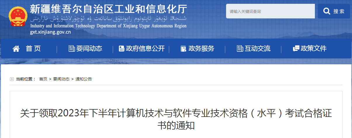 2023年下半年全国计算机技术与软件专业技术资格(水平)考试新疆考区合格证书开始发放,现就有关事项通知如下: