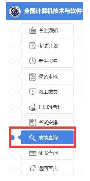 方式二:进入中国计算机技术职业资格网,点击“报名入口”后选择自己所报考的地区,登录进入报名系统后点击“成绩查询”
