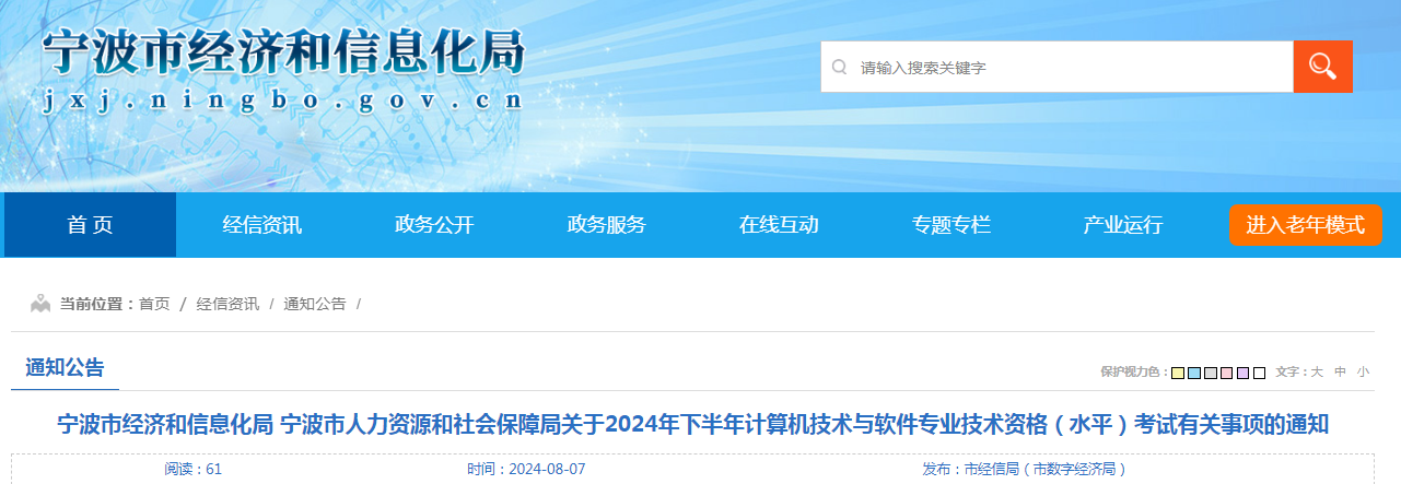根据全国计算机专业技术资格考试办公室《关于2024年度计算机技术与软件专业技术资格(水平)考试工作安排及有关事项的通知》(计考办〔2024〕1号)精神,现就2024年下半年计算机技术与软件专业技术资格(水平)考试(以下简称计算机软件资格考试)宁波考区有关事项通知如下: