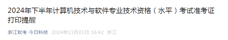 2024年下半年计算机技术与软件专业技术资格(水平)考试准考证打印提醒
