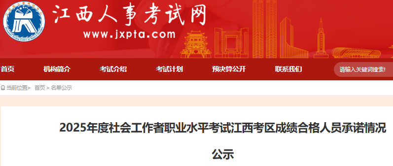 2025年度社会工作者职业水平考试江西考区成绩合格人员承诺情况公示