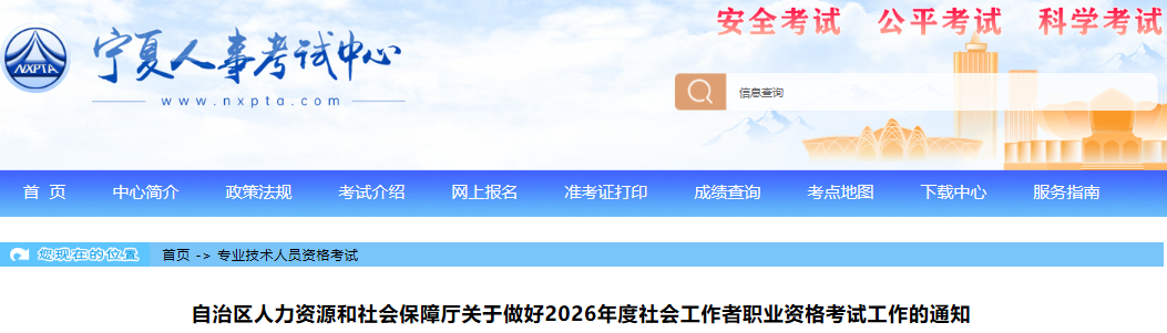 根据《人力资源和社会保障部人事考试中心关于做好2026年度社会工作者职业资格考试考务工作的通知》(人考中心函〔2026〕2号)要求,为做好我区2026年度社会工作者职业资格考试工作,现将有关事项通知如下。