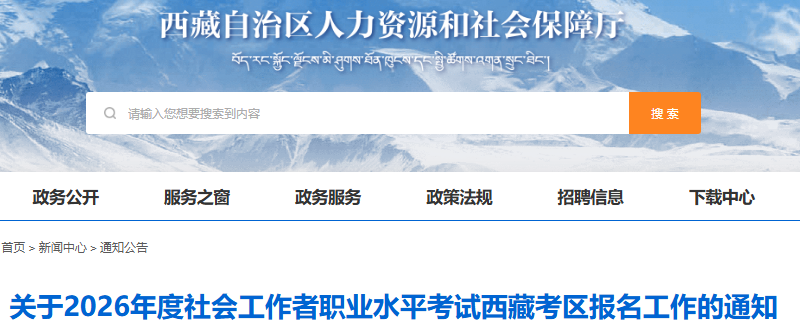 首页 > 社会工作者 > 报名时间 > 2026年西藏社会工作者考试报名通知发布,报名时间为3月10日—19日