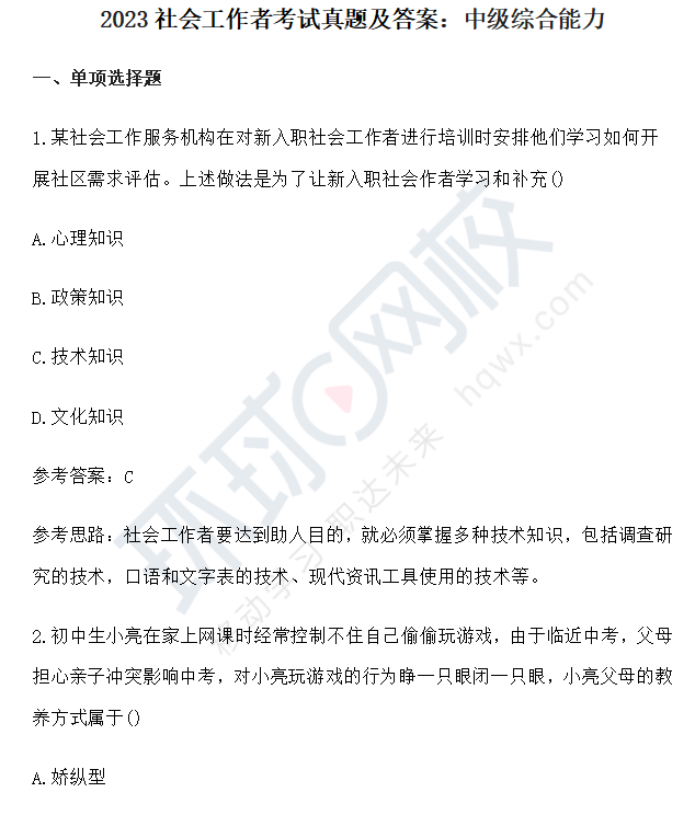 以下为2023中级社会工作者综合能力科目真题及参考答案+思路: