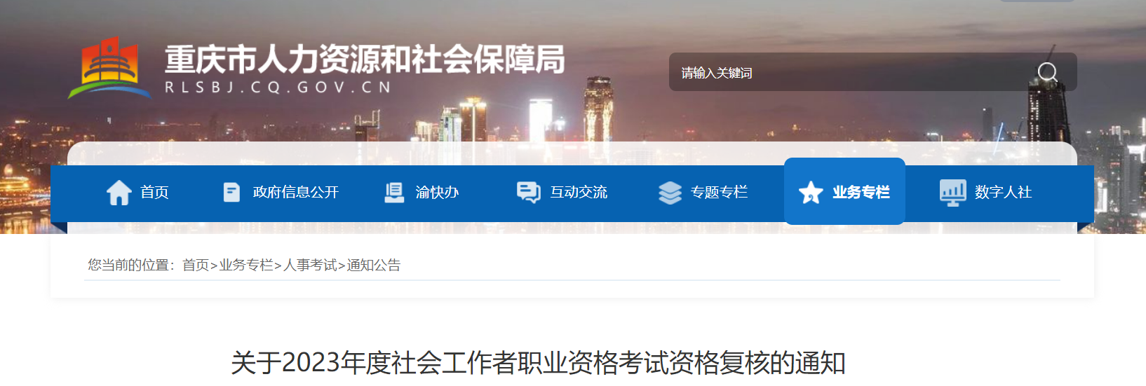近日,重庆市人力资源和社会保障局发布《关于2023年度社会工作者职业资格考试资格复核的通知》,2023年8月15日至8月23日对全部报考科目成绩达到试卷总分60%、拟取得资格证书的人员采用后台数据核查比对的方式进行资格复核。