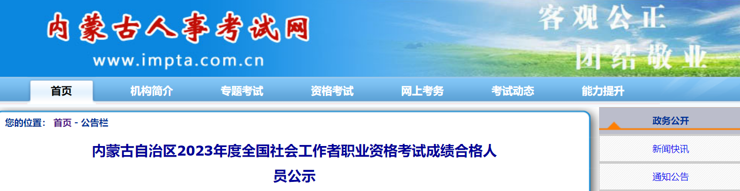 内蒙古自治区2023年度全国社会工作者职业资格考试成绩合格人员公示》正文如下: