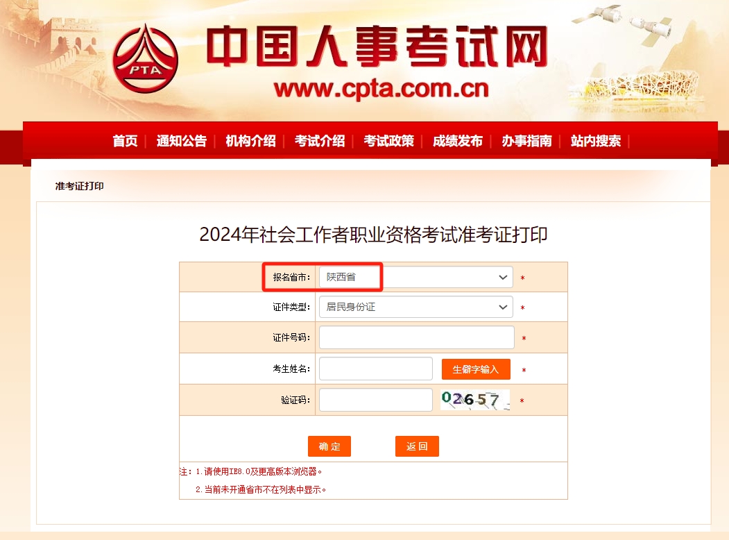 2024年陕西社会工作者打印入口开通,准考证打印页面如下: