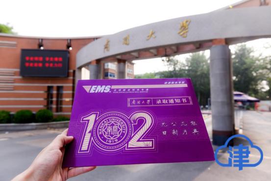 此外,今年的录取通知书特别定制了南开大学建校102周年EMS邮政专属封皮,正面以校徽、校名等元素组成数字“102”;背面印有“南开最好的学生”——周恩来总理手书的“愿相会于中华腾飞世界时——弟翔宇临别预言”,这是1917年周恩来去往日本留学途中写下的话,饱含着青年周恩来矢志中华崛起的理想抱负。希望相会于102岁的南开大学的“新人们”,秉承总理之志,为中华之崛起而不懈奋斗。
